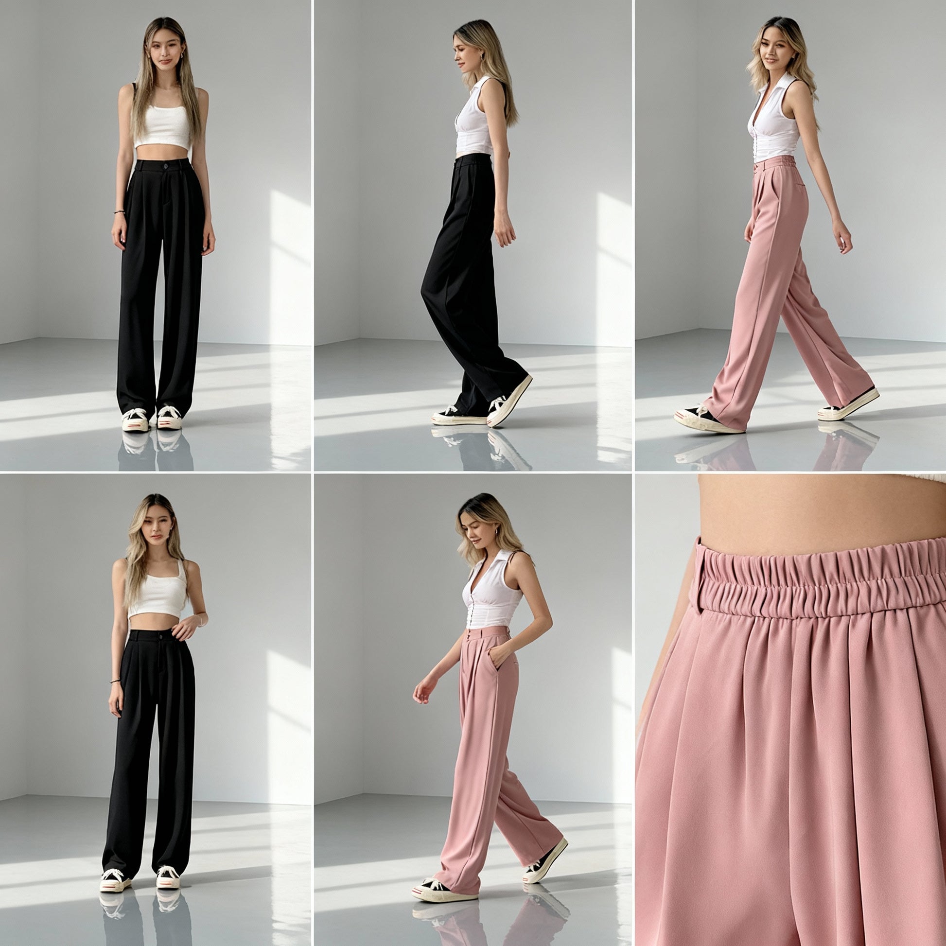 Sanne | Dames Hoog Getailleerde Wijde Pantalon